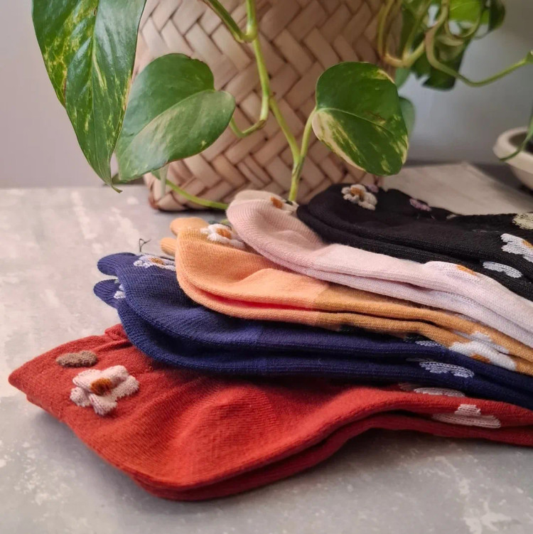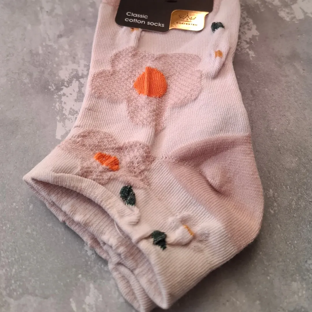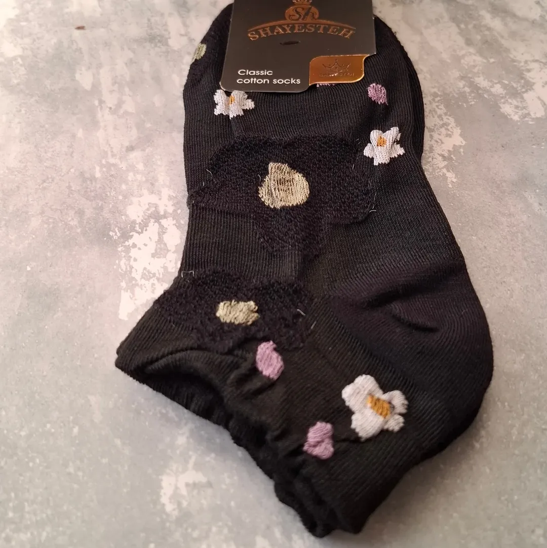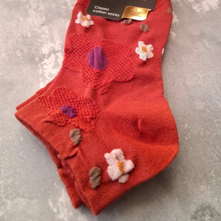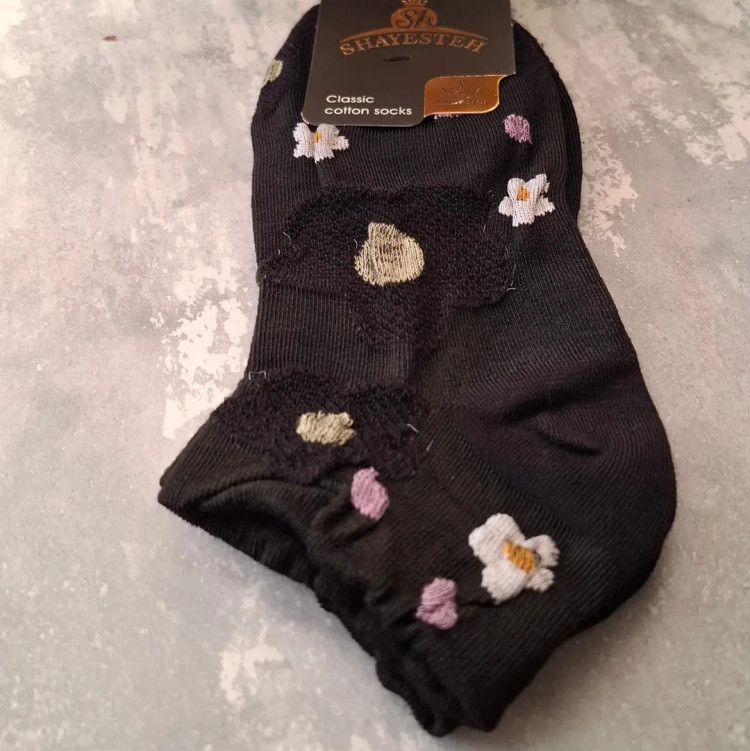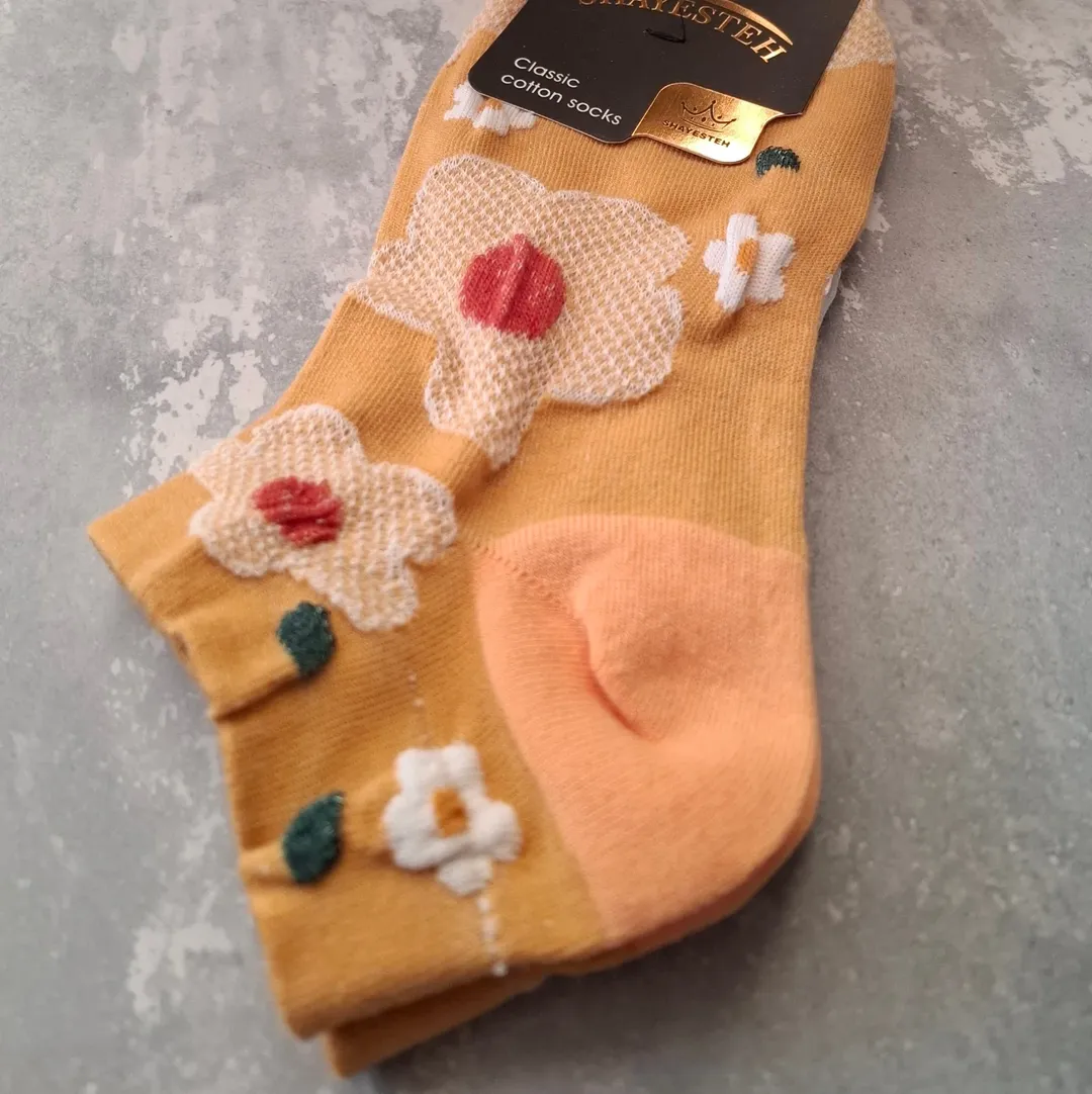 جوراب مچـی نخی زنانه با گـلای برجسـته ایرانی
