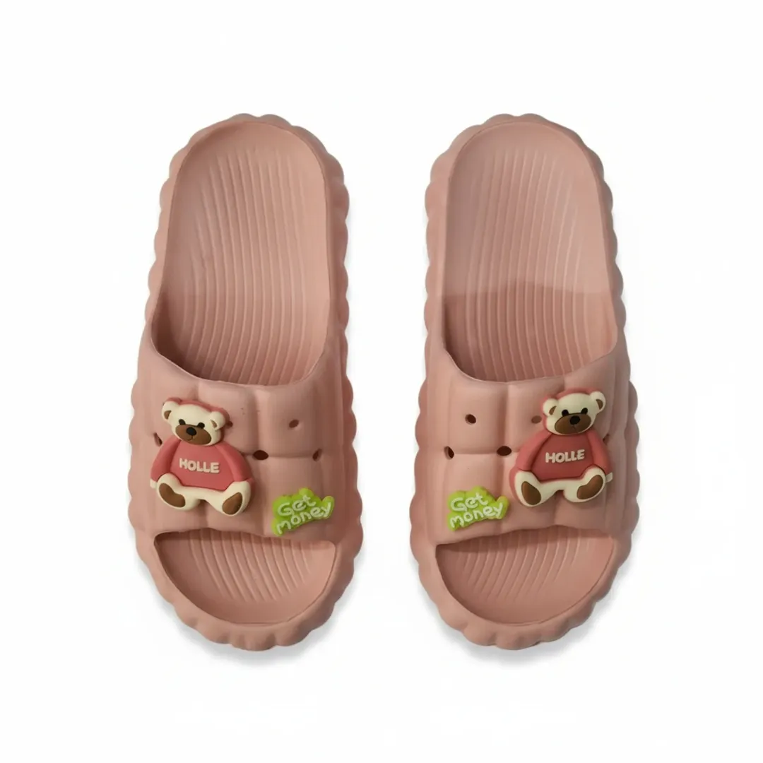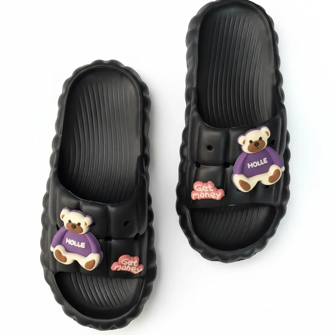 بسیار سبک و نرم مناسب برای استفاده در منزل حمام ساحل و استخر دارای کفی آج دار ضد لغزش و رویه ای با طرح برجسته خرس عروسکی و نوشته های فانتزی طراحی ارگونومیک برای راحتی بیشتر دمپایی های فانتزی و راحتی با طرح عروسکی خرس ایده آل برای استایل کژوال و استفاده روزمره در منزل یا بیرون